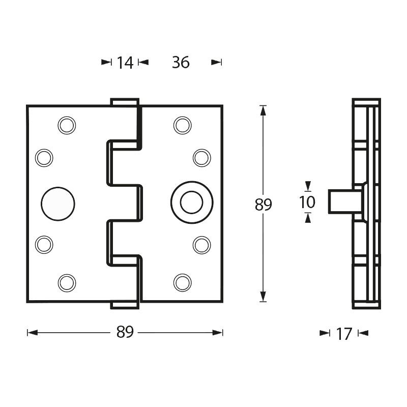Dit Kogellagerscharnier is gemaakt van roestvast staal en heeft een geborstelde afwerking voor een matte uitstraling. Dankzij het gebruik van massief rvs biedt dit scharnier een lange levensduur. Het scharnier met rechte hoeken is geschikt voor zowel naar rechts- als linksdraaiende deuren, doordat de stift en einddop gedemonteerd kunnen worden. Het Kogellagerscharnier heeft een hoogte van 89 mm, een breedte van 89 mm wanneer uitgeklapt en 3 mm dikke bladen. Dit scharnier is geschikt voor deuren tot 80 kilo en is SKG*** gecertificeerd, wat betekent dat het extra zwaar inbraakwerend is.
