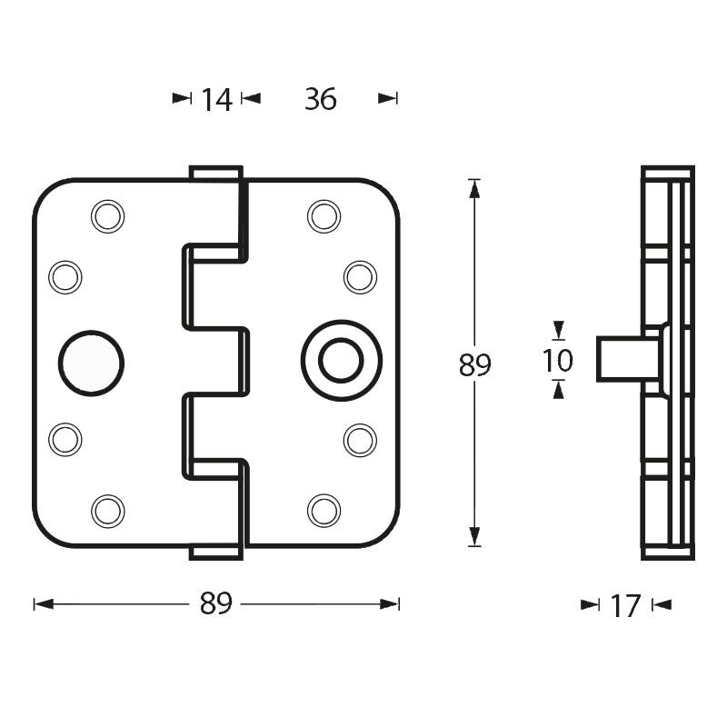 Dit Kogellagerscharnier is gemaakt van roestvast staal en heeft een geborstelde afwerking voor een matte look. Dankzij het gebruik van massief rvs biedt het een lange levensduur. Het scharnier heeft ronde hoeken en is geschikt voor zowel naar rechts- als linksdraaiende deuren, doordat de stift en de einddop gedemonteerd kunnen worden. Het Kogellagerscharnier is 89 mm hoog, 89 mm breed wanneer uitgeklapt, en heeft 3 mm dikke bladen. Dit scharnier is geschikt voor deuren met een gewicht tot 80 kilo. Bovendien is het SKG*** gekeurd, wat betekent dat het extra zwaar inbraakwerend is.
