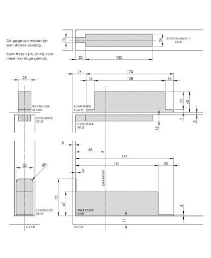 - Deurdikte: Geschikt voor een deurdikte vanaf 40 mm