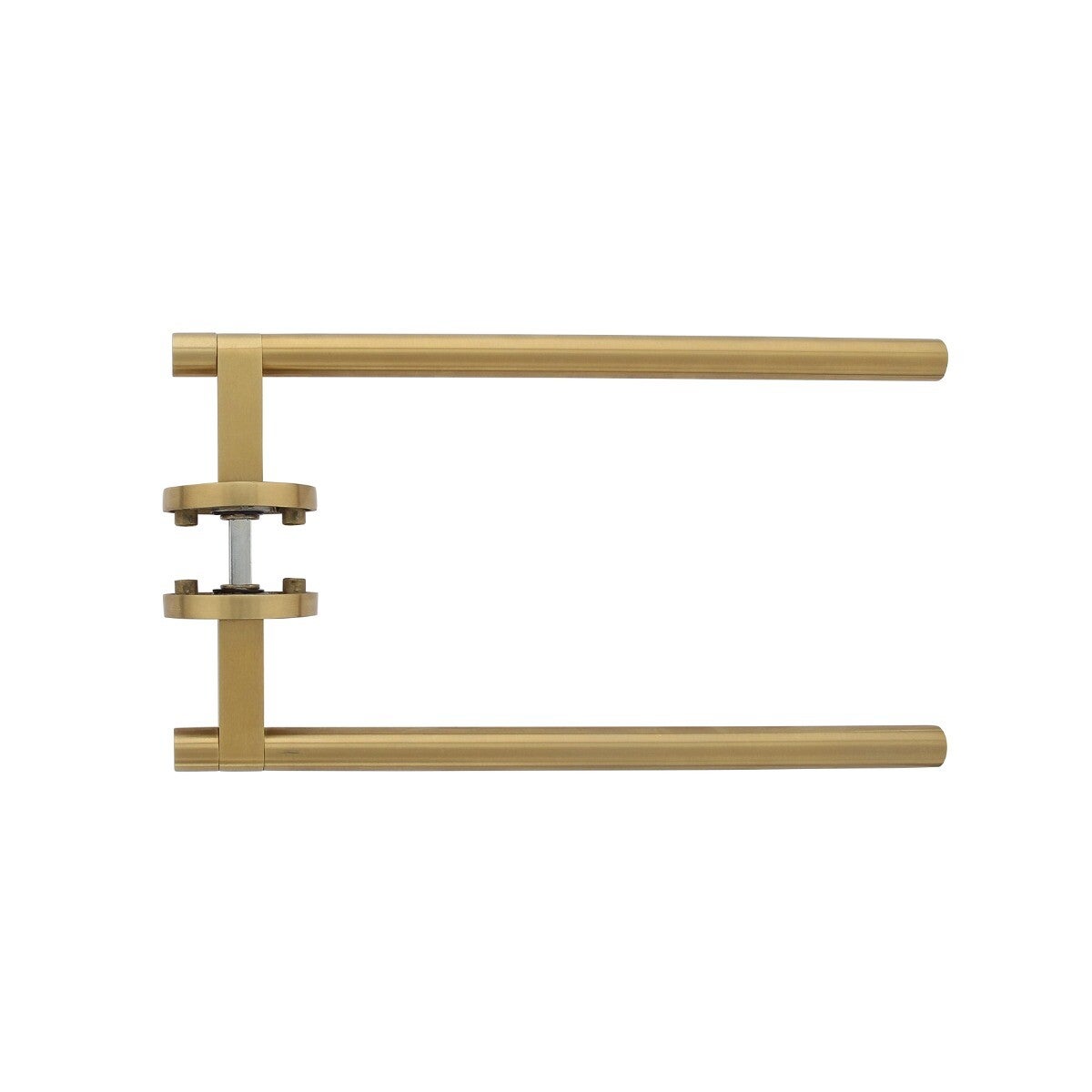 De deurkruk Shiraat op ronde rozet is het resultaat van een zoektocht naar minimalisme en eenvoud. Het ontwerp komt van de Amsterdamse ontwerpstudio Grand&Johnson, terwijl Intersteel zorgde voor de technische uitvoering. Deze succesvolle samenwerking leidde tot de Red Dot Design Award 2022. Bij het ontwerp stond de vraag centraal: ‘Wat betekent minimaal?’ Het resultaat is een exclusieve, slank vormgegeven deurkruk van 250 mm lang. Intersteel ontwikkelde speciaal voor deze lijn een nieuw veermechanisme dat de zware belasting door de lange greep moeiteloos aankan. De deurkruk is uitgevoerd in roestvast staal en afgewerkt met een hoogwaardige PVD-coating in de kleur mat messing. Bovendien heeft de deurkruk een éénzijdig rechts verdekte montage, wat betekent dat alleen de rechterkant een verdekte bevestiging heeft, terwijl de andere kant zichtbare schroefgaten vertoont. Het product wordt per paar geleverd, inclusief bevestigingsmaterialen voor montage.